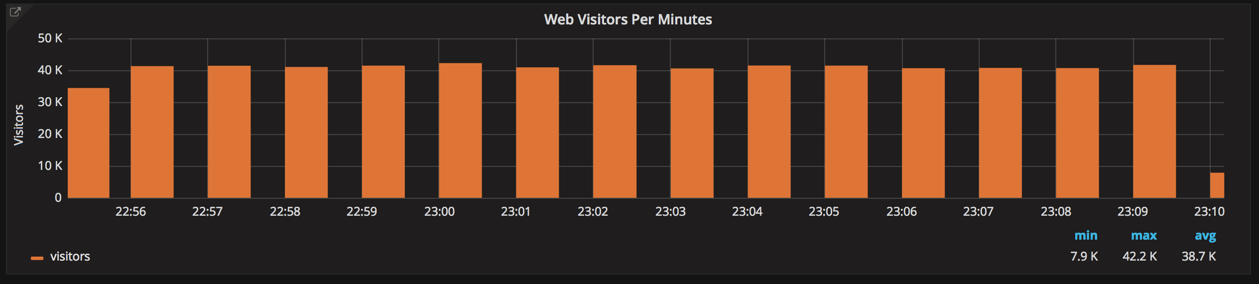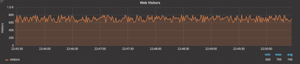 It’s true! Basically, if you can write a query, you can graph it. For example, let’s count all the visitors in every minute. Here is the query: