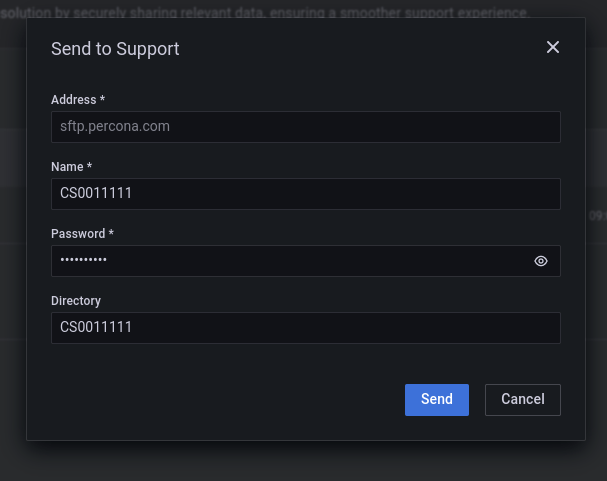 If you are a Percona Support customer, you can safely upload the dump to the Percona SFTP server by clicking “Send to Support.”