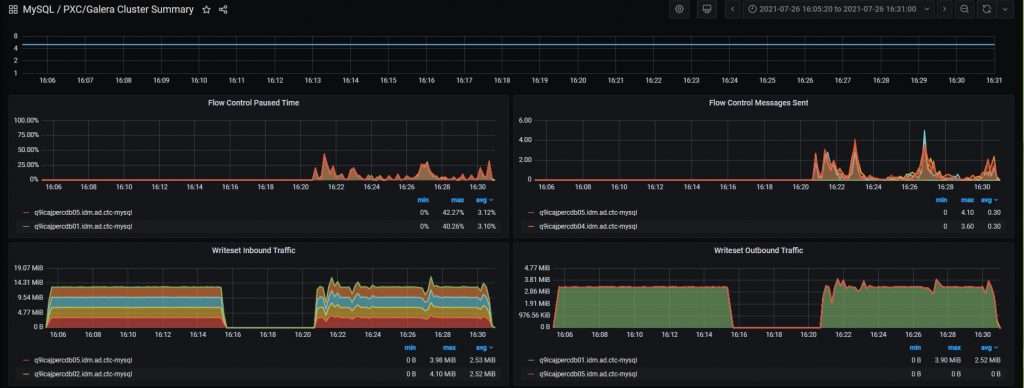 The goal of this test is to see the differences between wsrep_desync ON/OFF and wsrep_sync_wait = 1.
