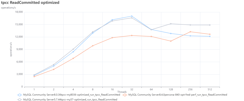 Frankly speaking, what we get here is what most of our users get as well, but on their own skin. MySQL performances are degrading with the increase of versions.