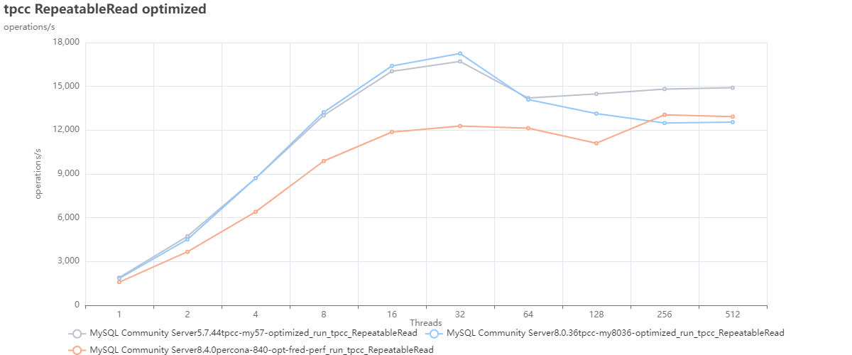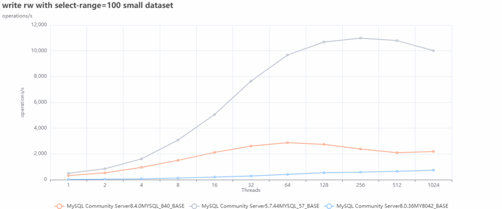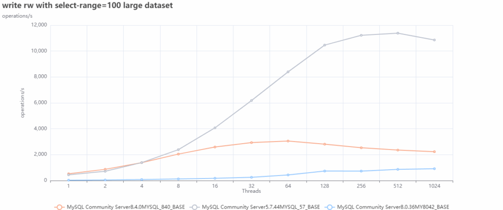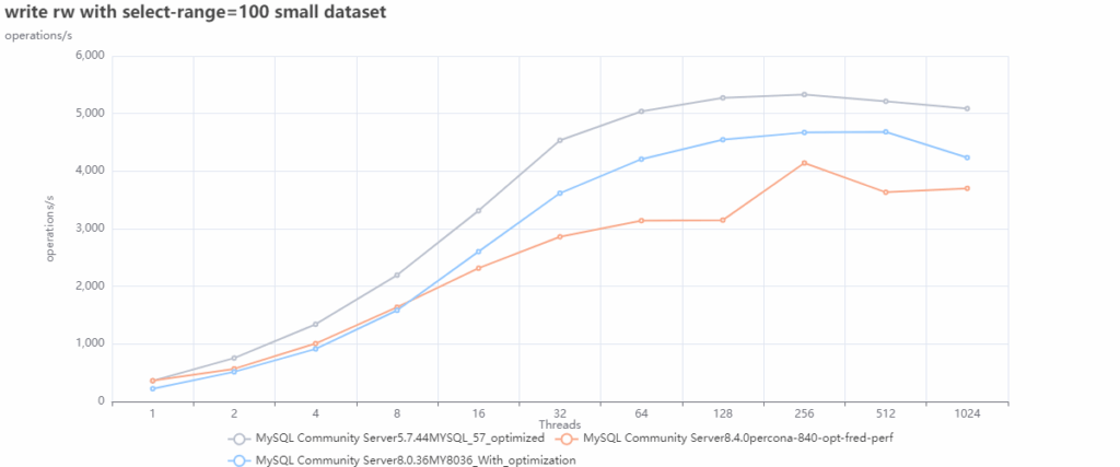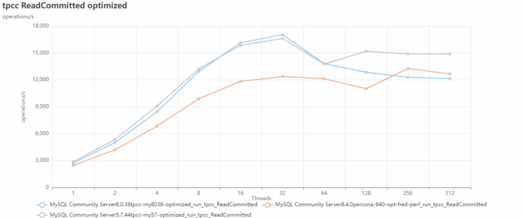 Frankly speaking, what we get here is what most of our users get as well, but on their own skin. MySQL performances are degrading with the increase of versions.