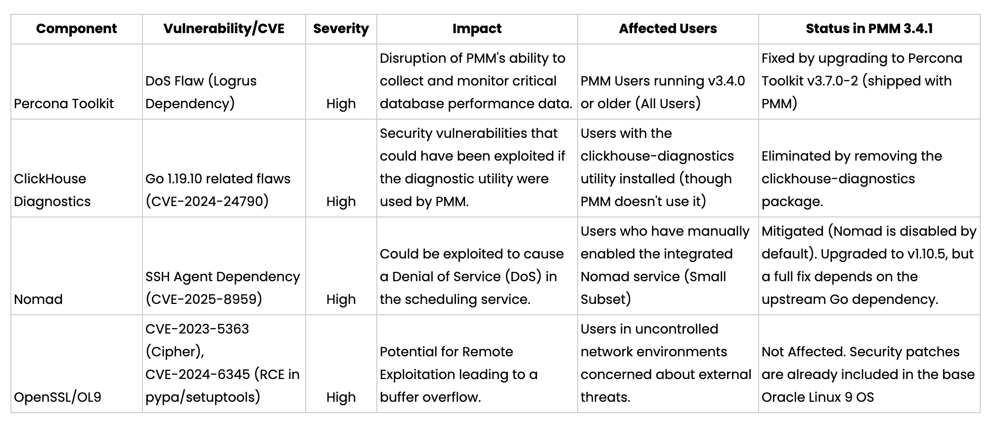 - We have released PMM 3.4.1 to directly address these security concerns. This includes: