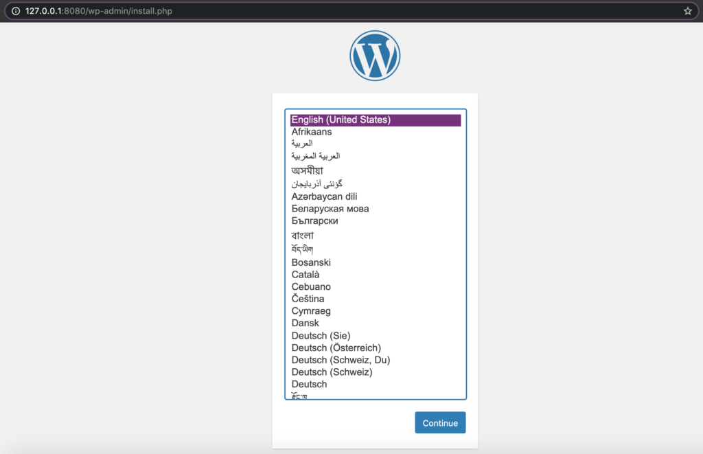 Then visit your WordPress site! http://127.0.0.1:8080/