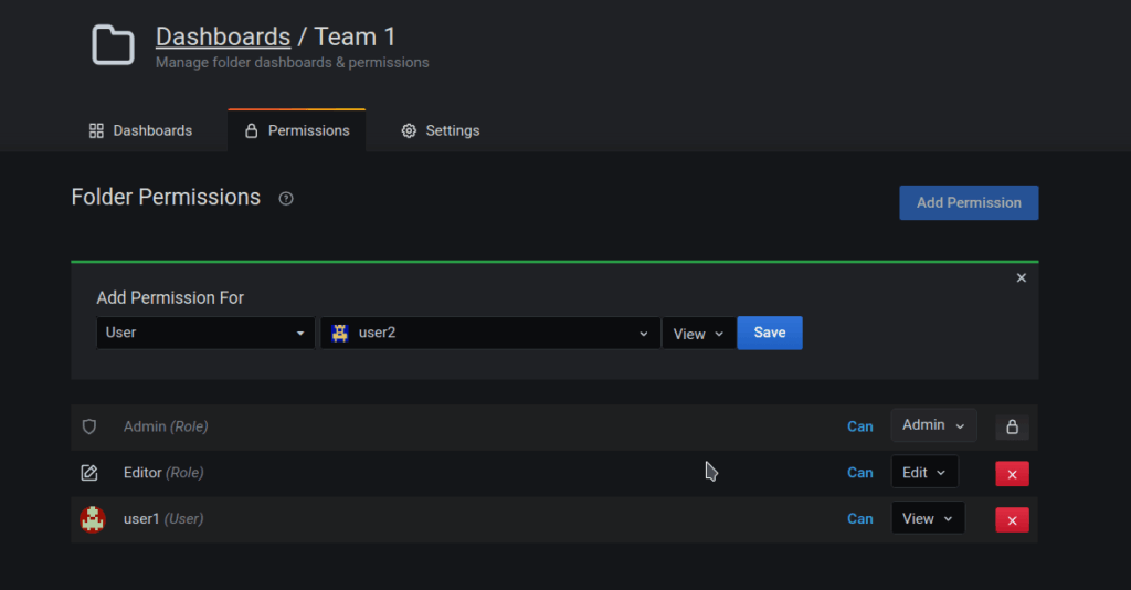 You can read more about this in the official Grafana documentation, in the section “Manage users“. Also, please keep in mind that users with “Editor” role have access to dashboards settings and can remove or modify regex filtering for servers/services. So it’s better to avoid assigning the “Editor” role to users in the provided solution.