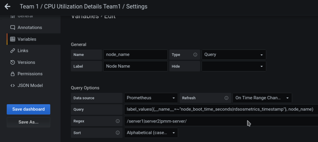 6. We are going to limit servers for dashboards to new folders. To do this, we must modify the node_name variables.