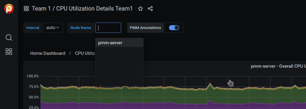As we can see, MySQL dashboards and “CPU Utilization Details” dashboards are accessible. But let’s also check the servers in the dropdown list of the last dashboard.