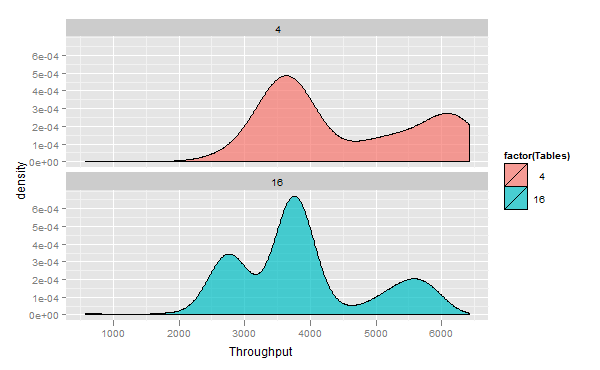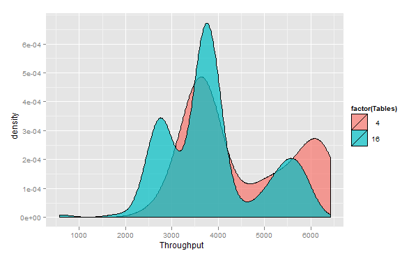 <br>m <- ggplot(dd,<br> aes(x = Throughput,fill=factor(Tables)))<br>m+geom_density(alpha = 0.7)<br> |