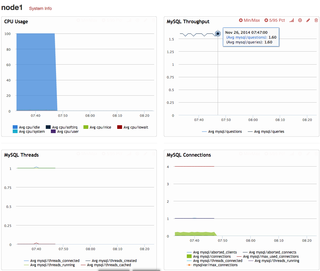 So far, so good. This Vagrant configuration (if I provide a PERCONA_AGENT_API_KEY in my environment) also registers my test servers with Percona Cloud Tools, so I can see data being reported there for my nodes: