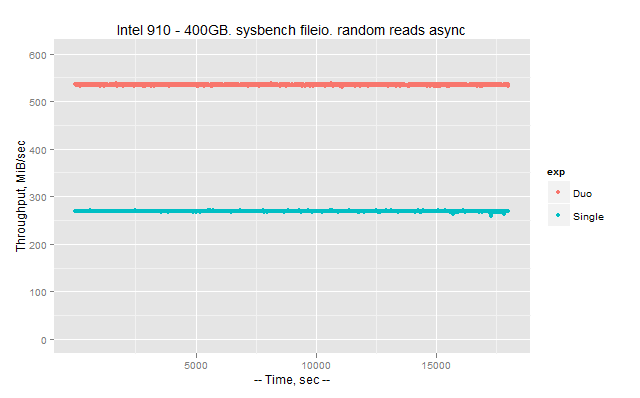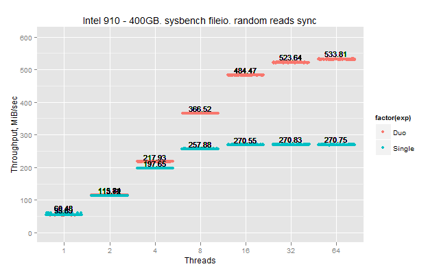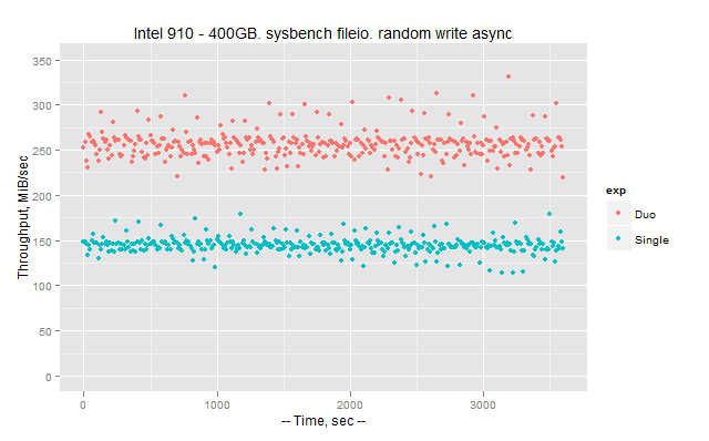 For my tests I used single 200GB device and pair combined in software raid0 (Duo).