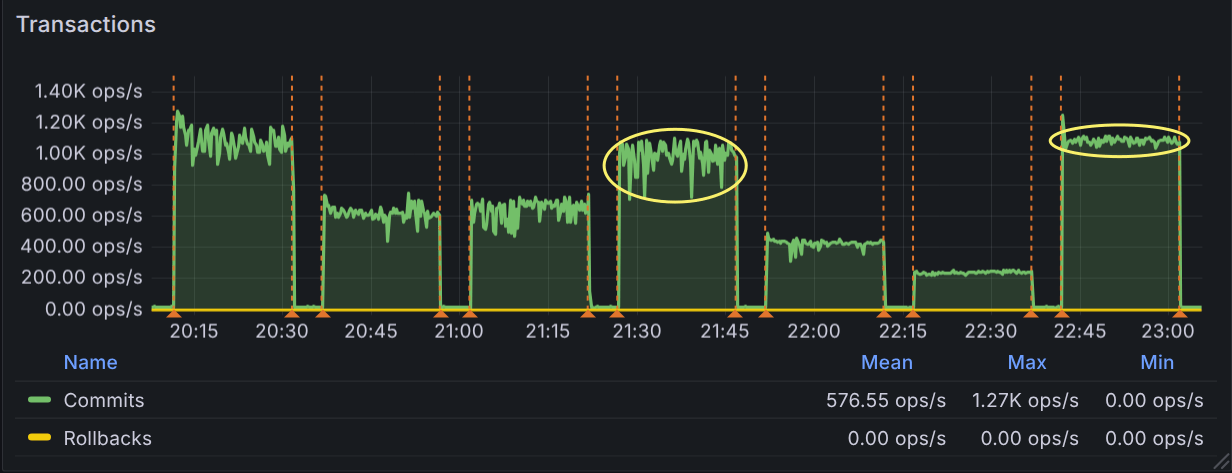To check this, I further filtered the queries per database server (primary and standby). The table below contains screenshots of the QAN view for the database servers, for each test: