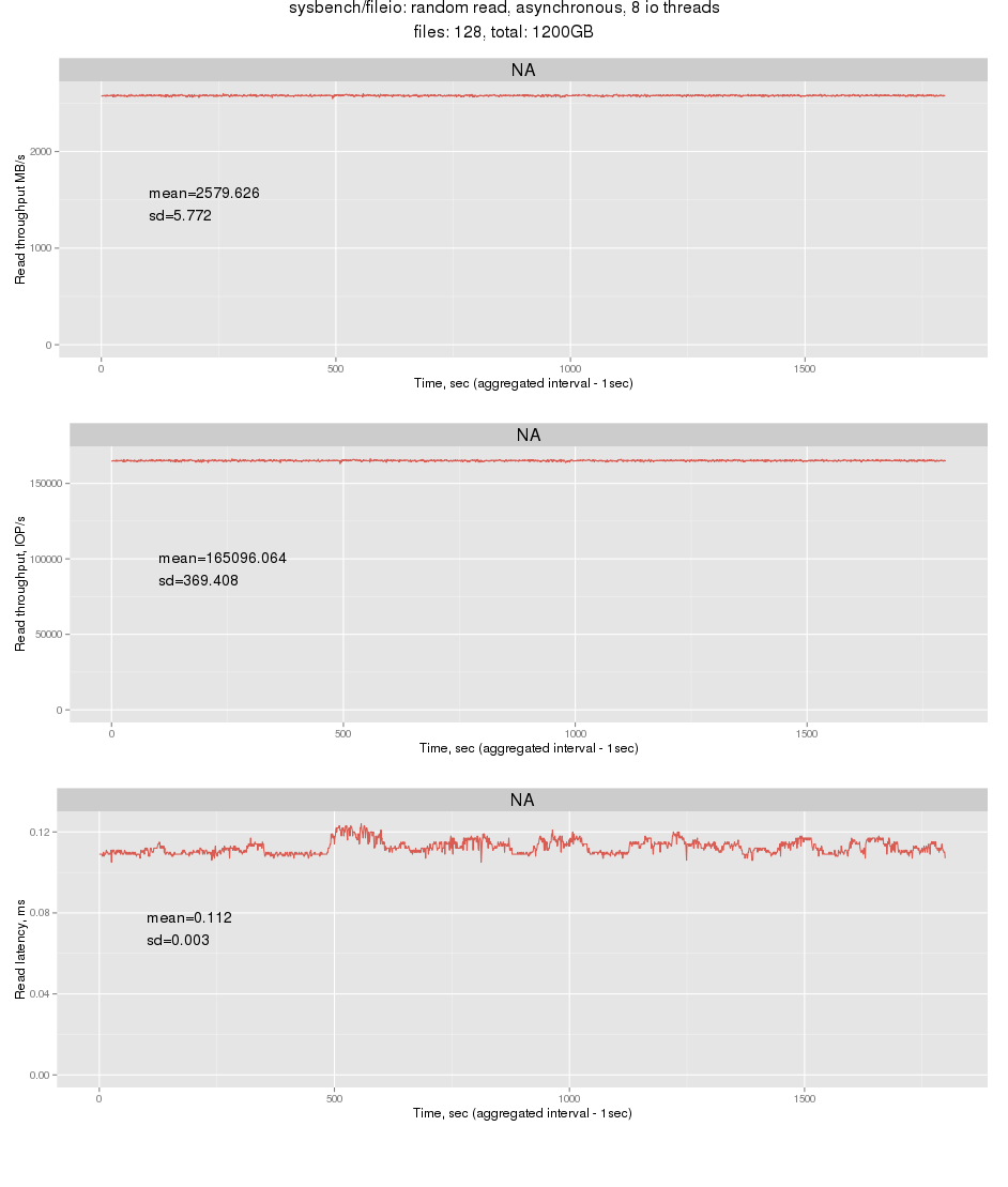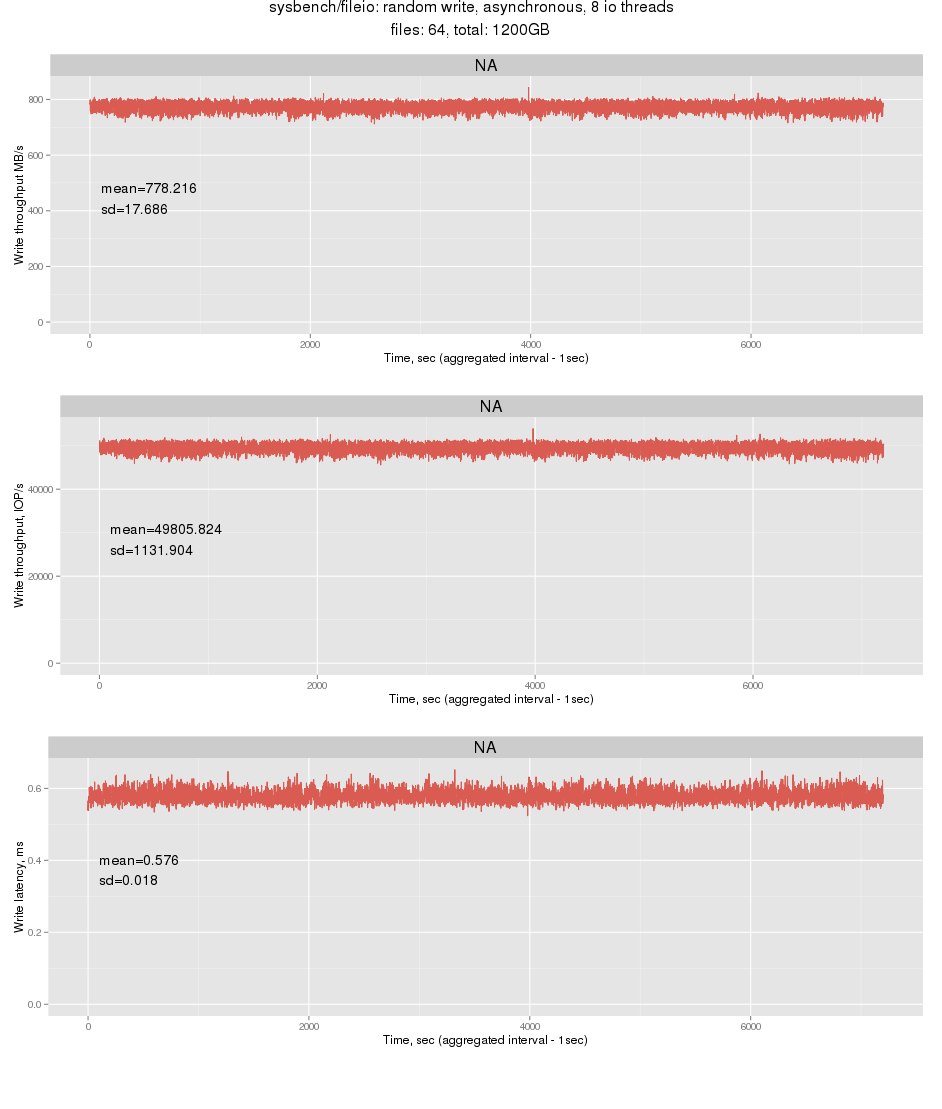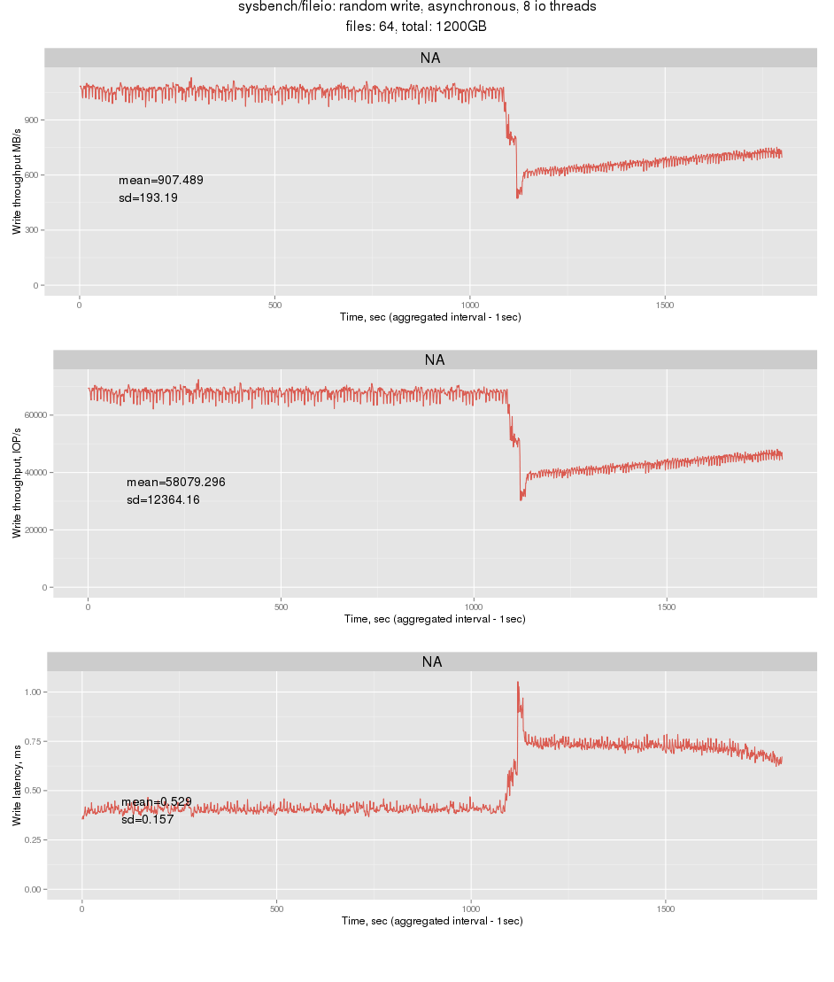 For reference, all of the FlashMax II benchmarks were performed on a Dell R710 with 192GB of RAM. This is a dual-socket Xeon E5-2660 machine with 16 physical and 32 virtual cores. (I had originally planned to use the Cisco UCS C250 that is often used for our test runs, but that machine ran into some unrelated hardware difficulties and was ultimately unavailable.) The operating system in use was CentOS 6.3, and the filesystem used for the test was XFS, mounted with both the noatime,nodiratime options. The card was physically formatted back to factory default settings in between the synchronous and asynchronous test suites. Note that factory default settings for the FlashMax II will cause it to be formatted in “maxcapacity” mode rather than “maxperformance” mode (maxperformance reserves some additional space internally to provide better write performance). In “maxcapacity” mode, the device tested provides approximately 2200GB of space. In “maxperformance” mode, it’s a bit less than 1900GB.