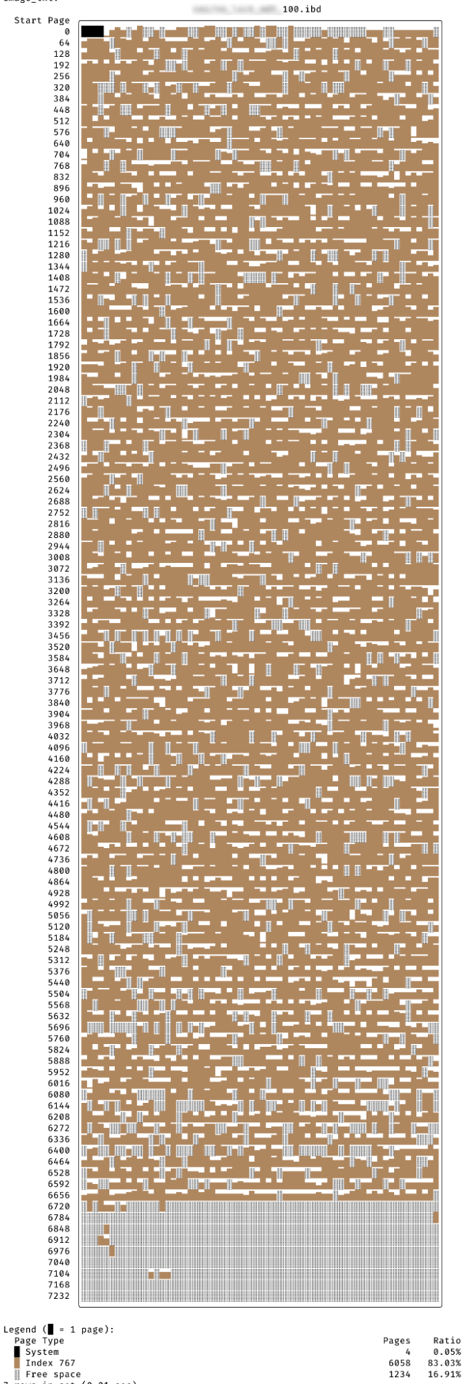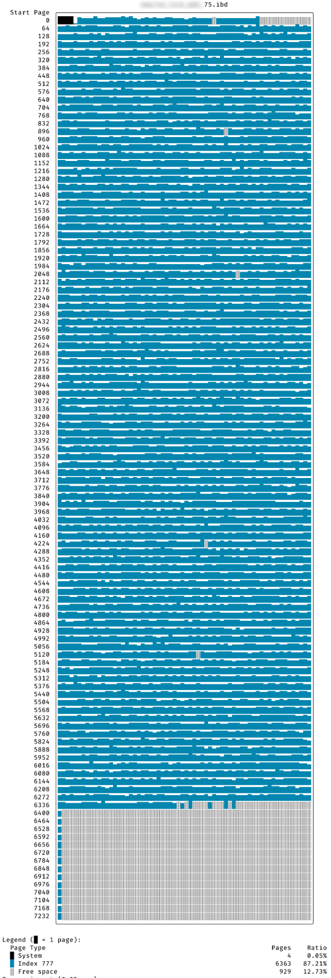 If you have a large table with random insertions, we recommend using a tool like innodb_ruby to monitor fragmentation and analyze if the table needs a rebuild with a different fill factor.