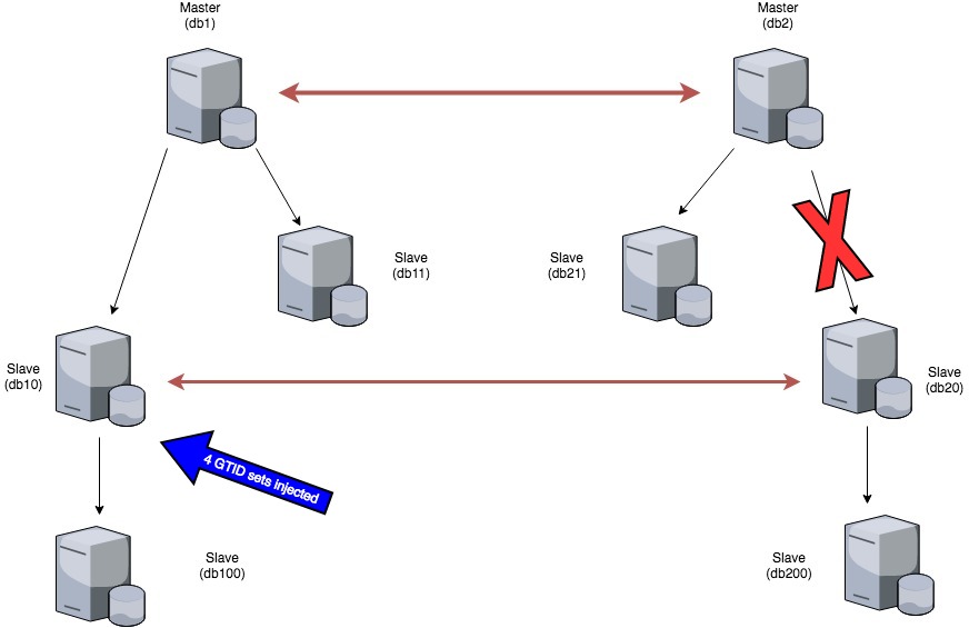 After that, we had to check the db2->db20 replication, which, as I’ve already said, was broken as well. In this case, injecting only the first GTID trx into db20 instead of all of those causing issues on db10 was enough!