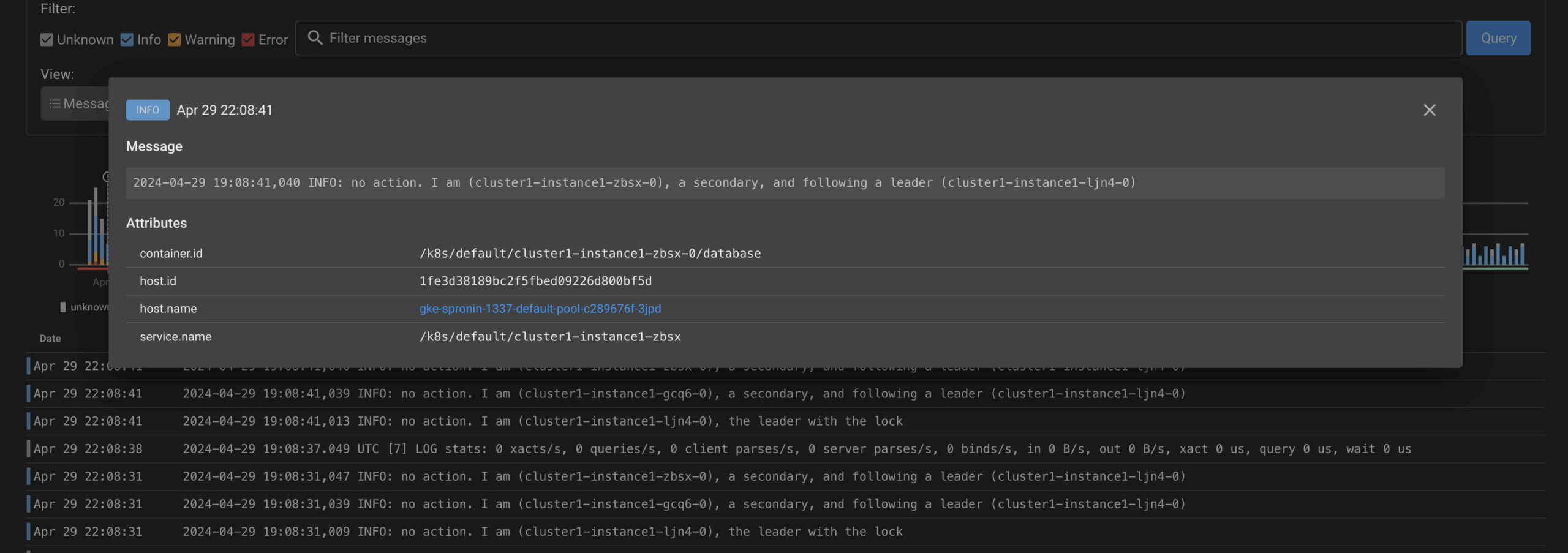 Built-in centralized logging is a must for a modern observability system. It definitely helps to debug complex applications with multiple components. A highly available PostgreSQL cluster has pgBouncer pods, primary and replica nodes, and backup containers. All these components are hard to debug without proper logging.