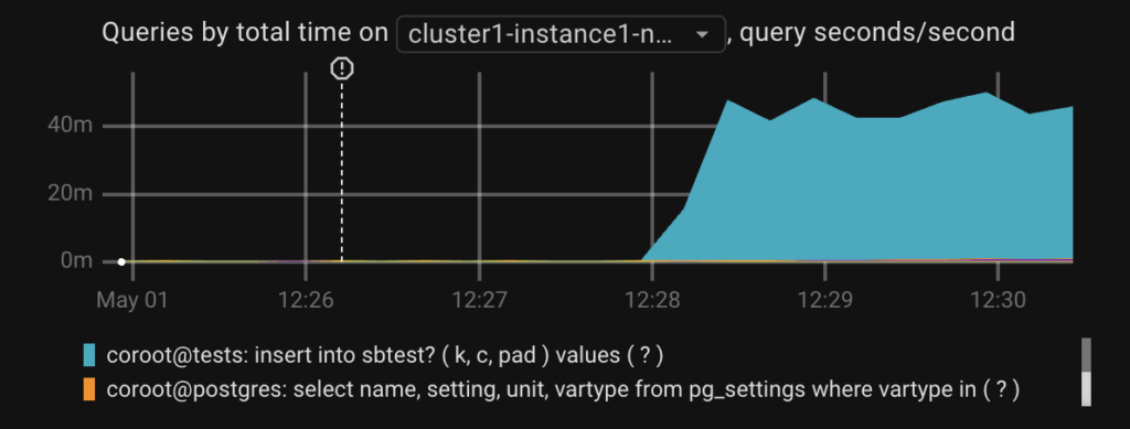 You will see the queries that are taking the most of the resources. Also how the load impacts the replication lag. I ran sysbench to generate some load, and this is how it impacted my database: