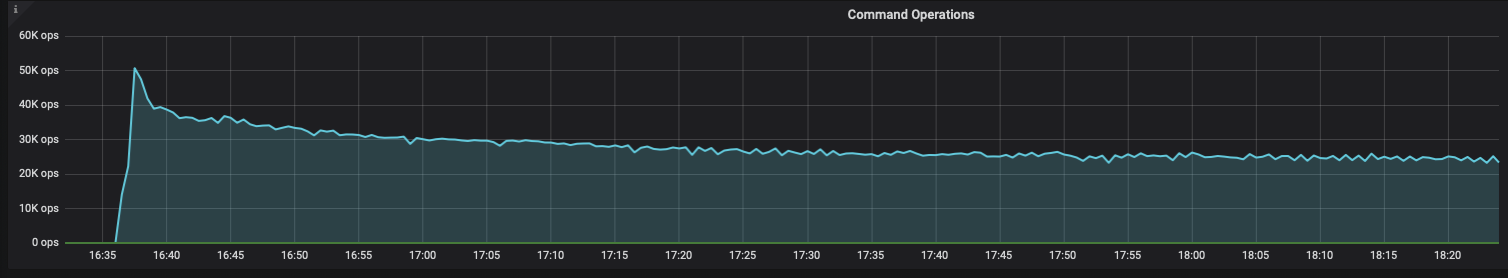 What we noticed is the load started at a decent rate, but after some time it started to slow down considerably. Doing some research by looking at metrics, we noticed WiredTiger checkpoint time was increasing more and more as time passed. We went from only a few seconds to checkpoints taking even a few minutes(!). During checkpoints, performance basically tanked: