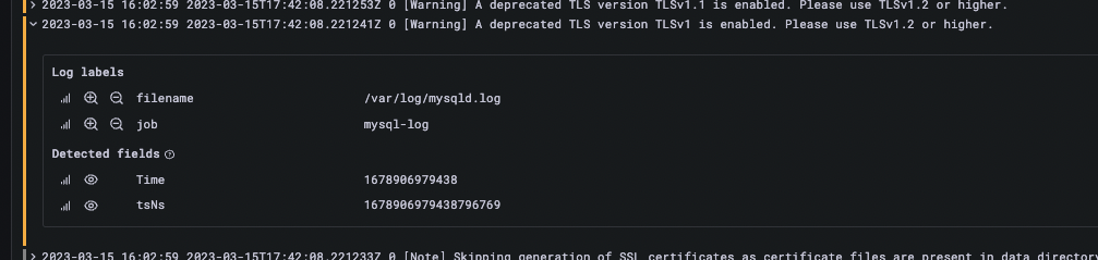 Finally, we need to add Promtail to the mysql OS user group, too, so it can read the file.
