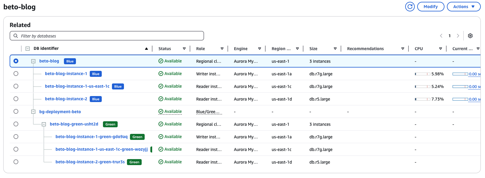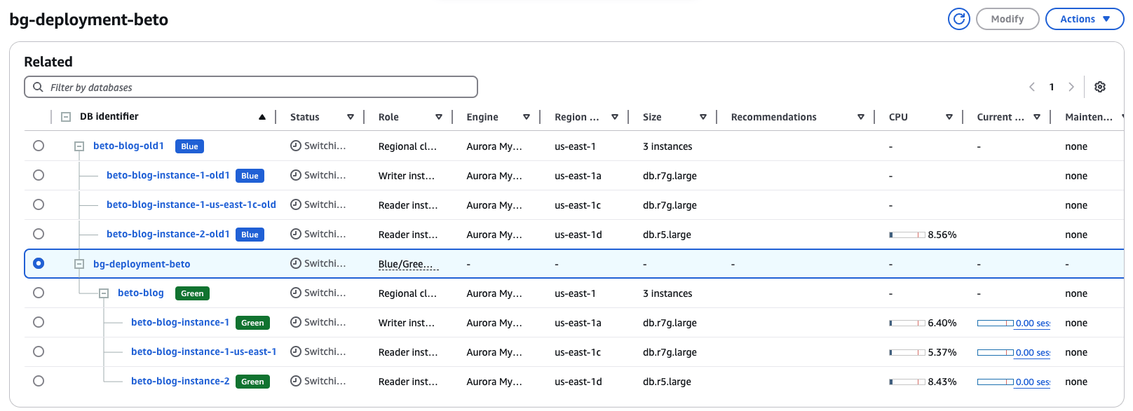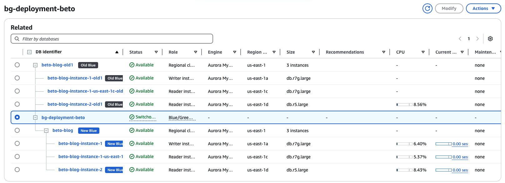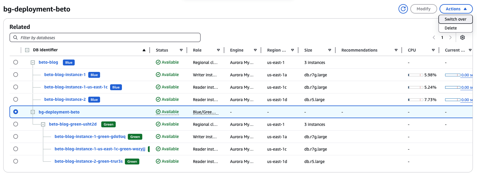Also, please be familiar with the limitations of the blue/green deployments. You may see those on the following link: https://docs.aws.amazon.com/AmazonRDS/latest/UserGuide/blue-green-deployments-considerations.html