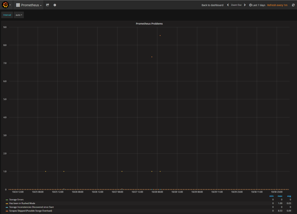 There are several ways to check for auto_increment capacity; this is just one of them. But what really matters is how PMM collects a rich set of information, and that’s is available for just one API request of distance. Note that each additional metric series collected by Prometheus adds additional work on the PMM Server, so watch that your server doesn’t enter what is known as Rushed Mode. This is a condition where the PMM Server is experiencing a high volume of writes and is struggling to keep up. You can identify this condition (since version 1.4) by examining the Prometheus dashboard, and in particular the graph Prometheus Problems. Check for the metric series called “Has been in Rushed Mode” and see if is greater than 0.