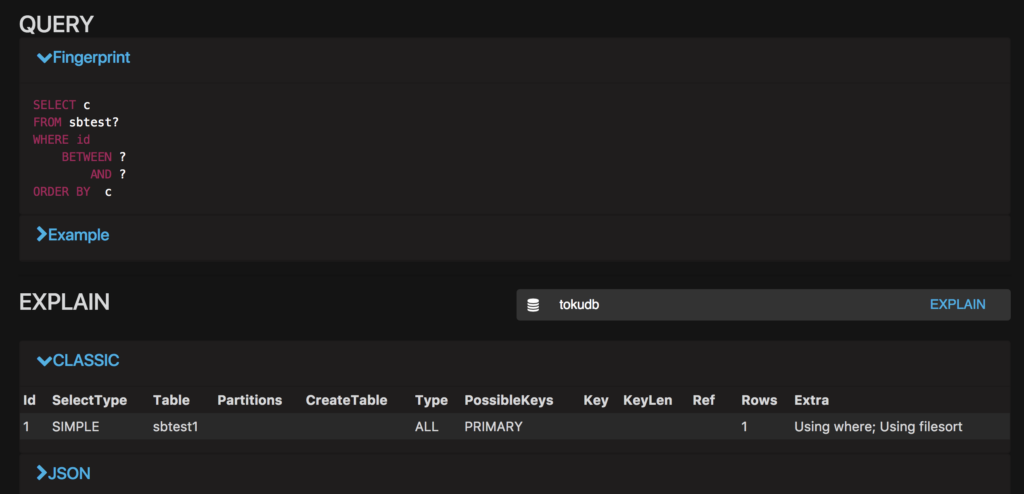 In the beginning, there was EXPLAIN. The venerable EXPLAIN command has been with us a long time as a built-in MySQL utility statement. Its purpose is to explain that what the optimizer predicts is the best “plan” and describe that to us. It tells us where data is gathered from, how it is filtered, and how it is combined or aggregated and much more: