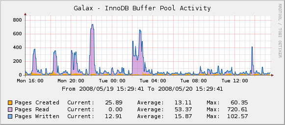 At Percona Live last week, someone showed me a graph from their Cacti monitoring system, using the templates that I wrote. It was the buffer pool pages read, written, and created. He asked me if the graph was okay. Shouldn’t there be a lot more pages read than written, he asked? It’s a great question.