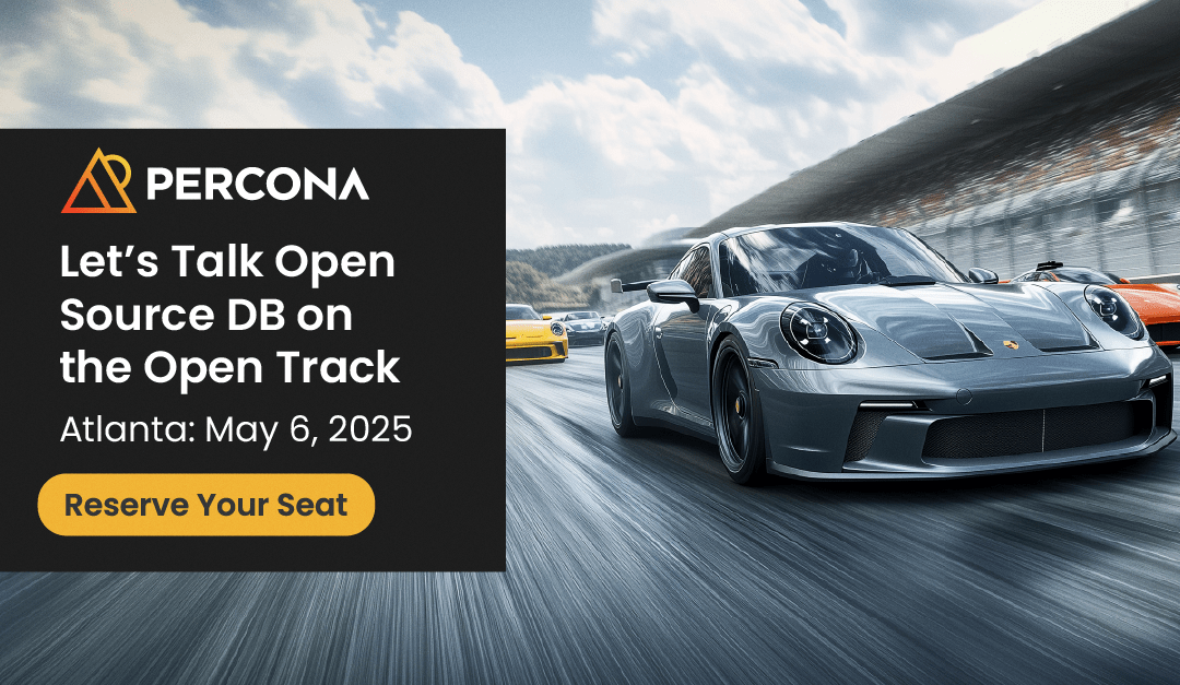 Join Percona for an afternoon experience you won’t want to miss on Tuesday, May 6th at the Porsche Experience Center Atlanta. We want to be the pit crew to push your OSS DB machines to their full potential! Take your MySQL, Postgres, and Mongo DB’s to the winner’s circle with Percona! Join us for this exclusive opportunity to race against other industry leaders on the track!