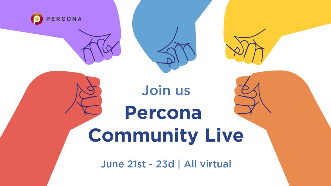 We are glad to announce a new virtual event – Percona Community Live! It will take place on June 21-23 online and will be live-streamed on YouTube, LinkedIn, Twitter, and Twitch. It is an excellent opportunity to learn from the best-of-breed experts directly from your home! We will focus on the latest trends in the database world, and secret tricks from the open source stars. All attendees will be able to ask their questions and chat on Discord.