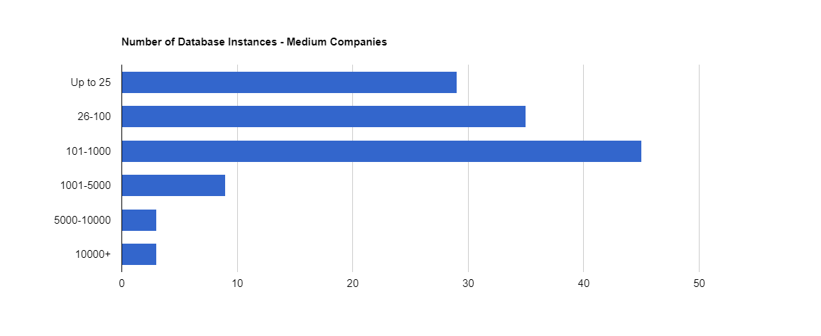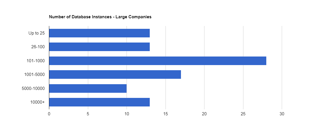 Our data showed that over half of businesses used 25 instances or less. Unsurprisingly, the larger the company, the more often respondents had up to 10000 instances (or even more) in production.