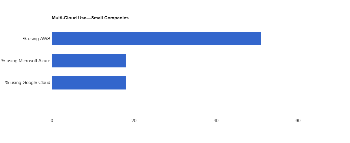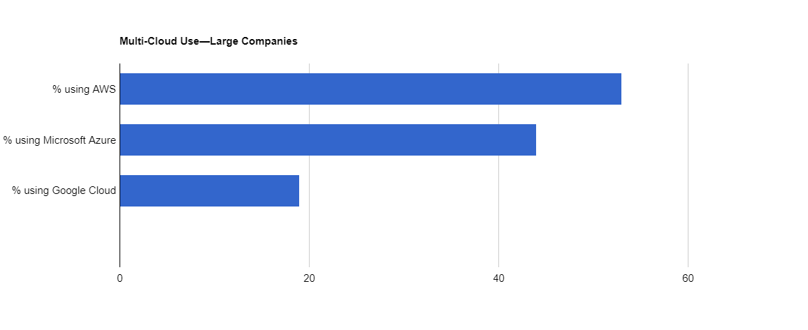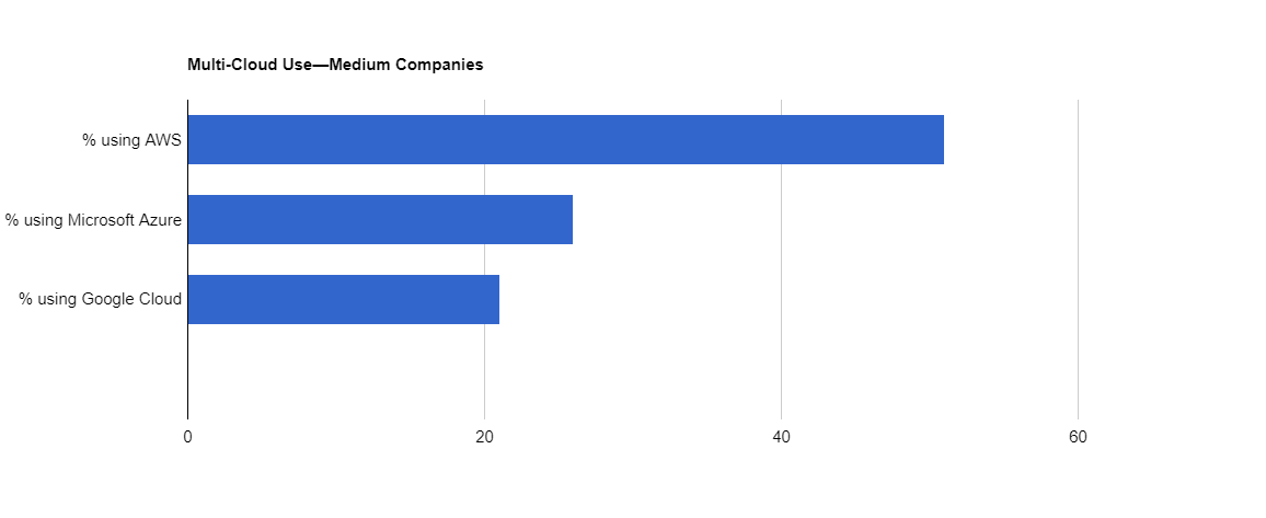 The most significant change here is large companies, 28% of which now use two providers or more, compared to just 17% in 2019, far higher than small and medium companies (at 12% and 10% respectively). This might be because larger companies have more data to parcel off and more money to spend on multiple providers.