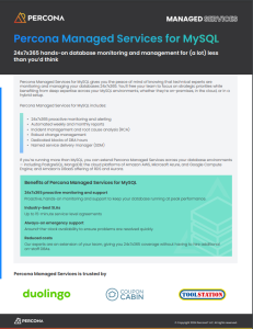 Percona Managed Services for MySQL ensures your databases are monitored and managed 24x7x365 by technical experts—whether on-premises, in the cloud, or hybrid.